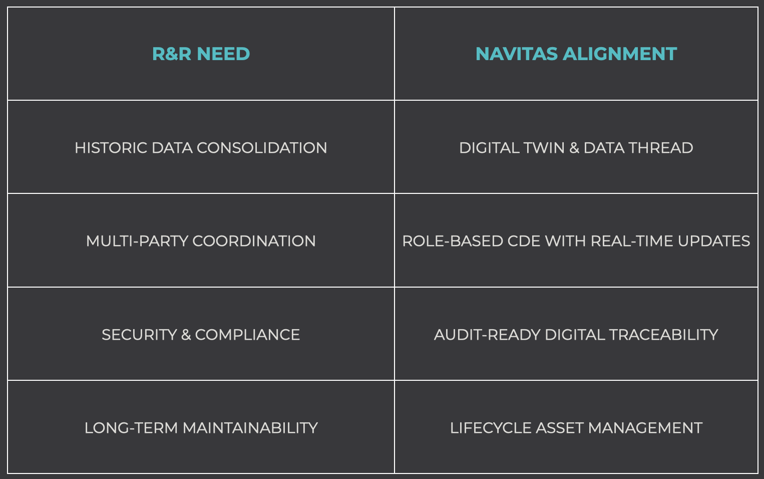 Navitas Value: Provides a Digital Thread that connects programme schedule, cost, risk, and asset performance data in real time.